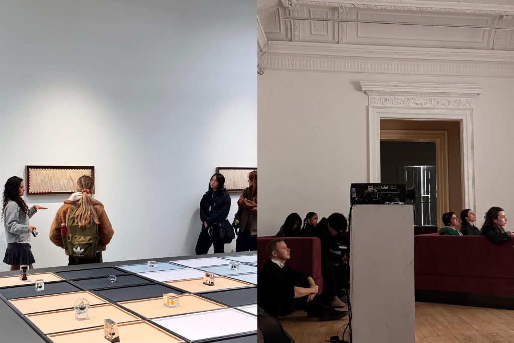This structure allowed students to encounter the gallery through multiple modes: exhibition viewing, moving image, and institutional dialogue. The rotation encouraged discussion across groups afterwards, as each returned with a different experience of the space.